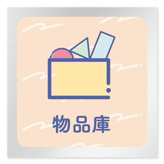 デザイナールームプレート アパレル向け パステル 物品庫 アルミ板 W150×H150 (AL-1515-AB-KM1-0116)