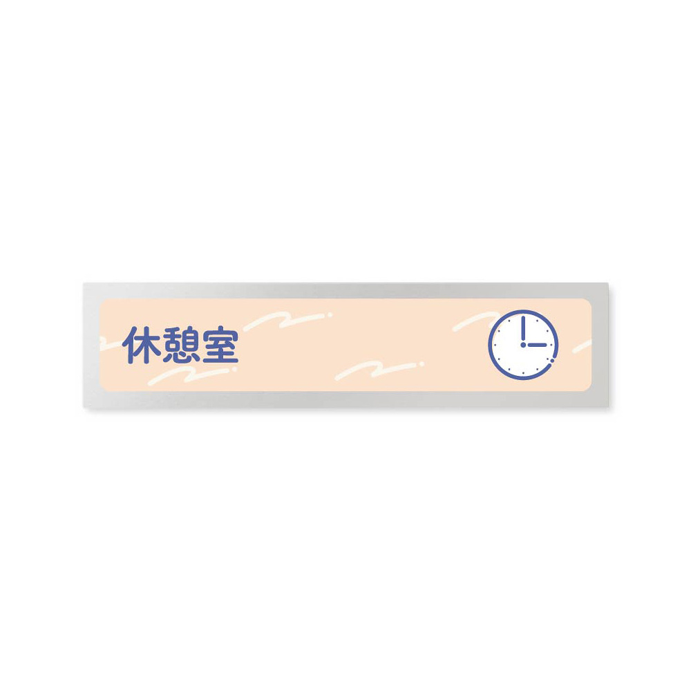 デザイナールームプレート アパレル向け パステル 休憩室 アルミ板 W250×H60 (AL-2560-AB-KM1-0210)