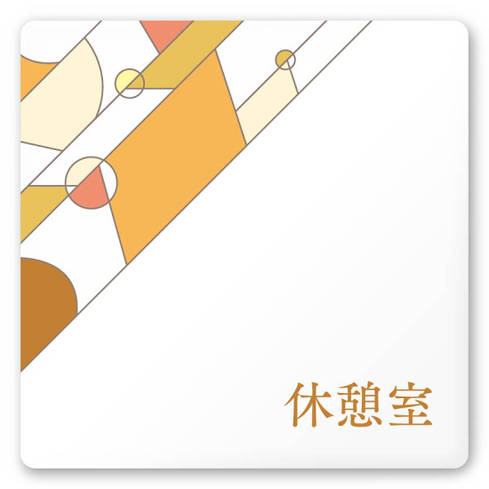 商品説明:デザイナールームプレート アパレル向け グラス 休憩室 白マットアクリル W150×H150 (AC-1515-AA-KM2-0110)