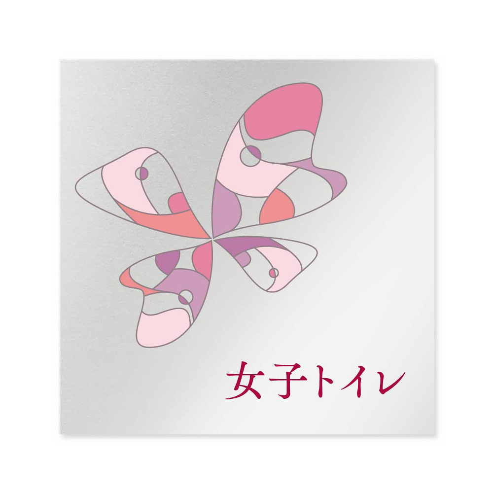 デザイナールームプレート アパレル向け グラス 女子トイレ アルミ板 W150×H150 (AL-1515-AB-KM2-0104)