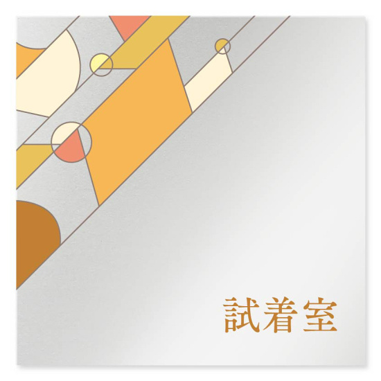 商品説明:デザイナールームプレート アパレル向け グラス 試着室 アルミ板 W150×H150 (AL-1515-AB-KM2-0107)