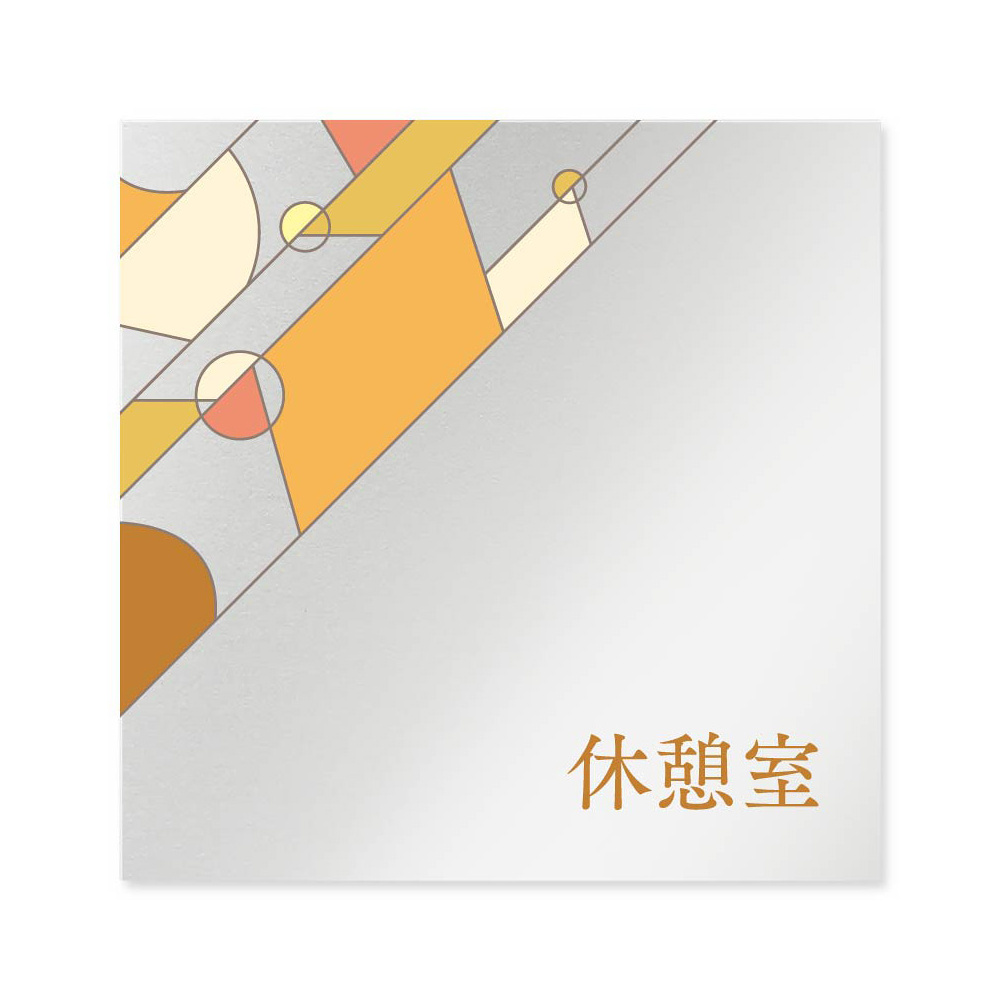 デザイナールームプレート アパレル向け グラス 休憩室 アルミ板 W150×H150 (AL-1515-AB-KM2-0110)