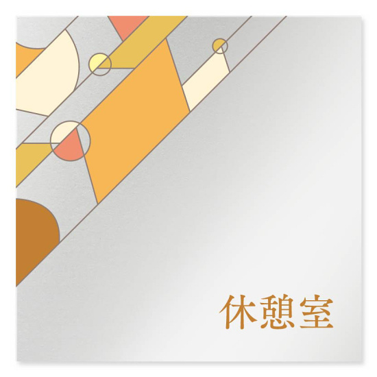 商品説明:デザイナールームプレート アパレル向け グラス 休憩室 アルミ板 W150×H150 (AL-1515-AB-KM2-0110)