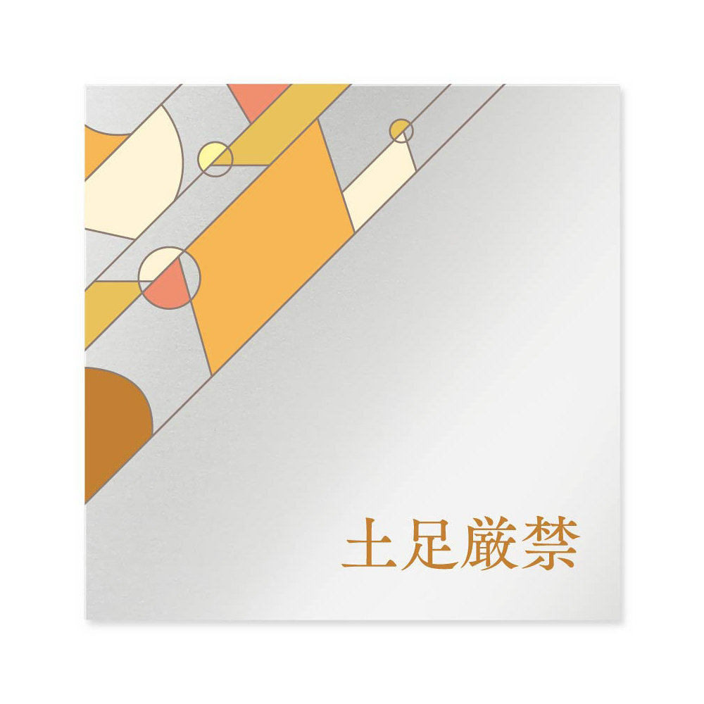 商品説明:デザイナールームプレート アパレル向け グラス 土足厳禁 アルミ板 W150×H150 (AL-1515-AB-KM2-0118)