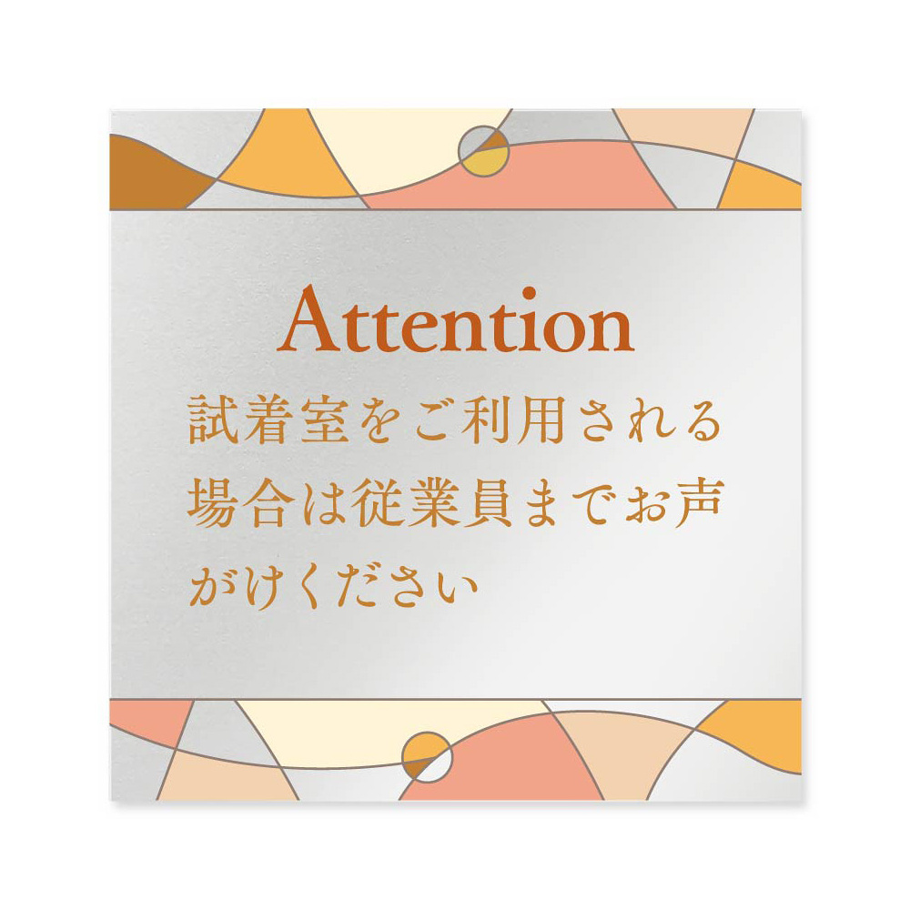 デザイナールームプレート アパレル向け グラス 試着利用案内 アルミ板 W150×H151 (AL-1515-AA-KM2-0120)