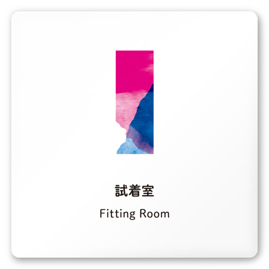 デザイナールームプレート アパレル向け 水彩 試着室 白マットアクリル W150×H150 (AC-1515-AA-NT1-0107)