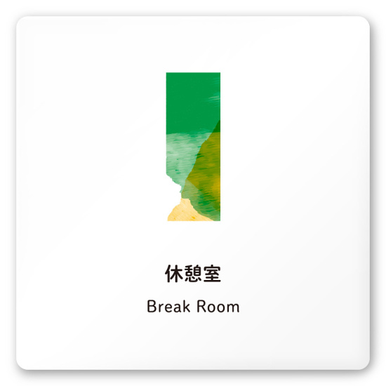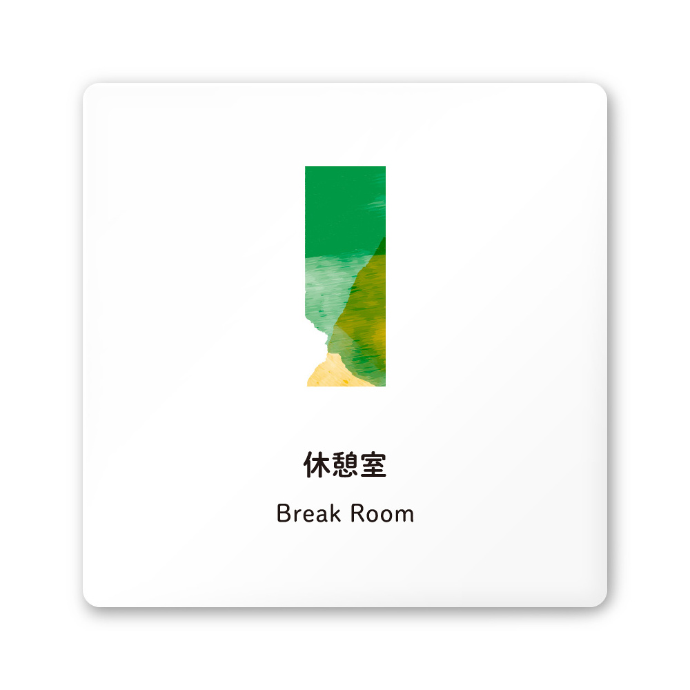 デザイナールームプレート アパレル向け 水彩 休憩室 白マットアクリル W150×H150 (AC-1515-AA-NT1-0110)