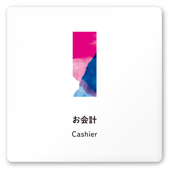 デザイナールームプレート アパレル向け 水彩 お会計 白マットアクリル W150×H150 (AC-1515-AA-NT1-0113)