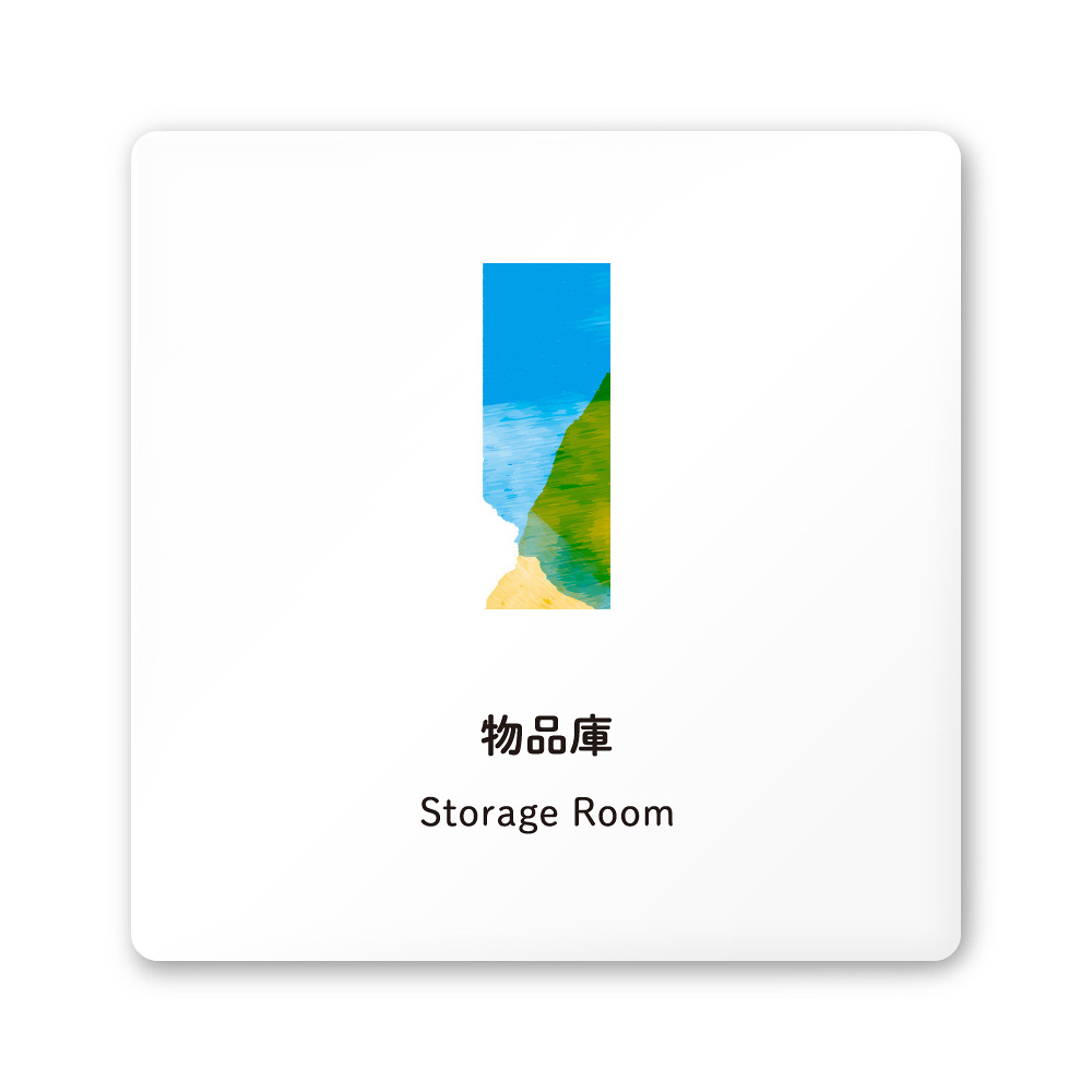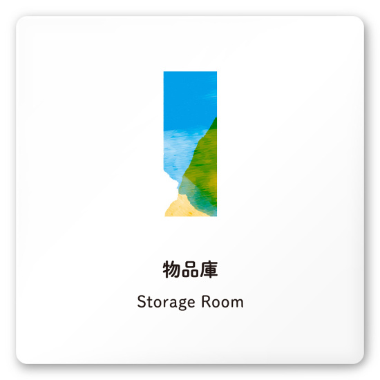 デザイナールームプレート アパレル向け 水彩 物品庫 白マットアクリル W150×H150 (AC-1515-AA-NT1-0116)