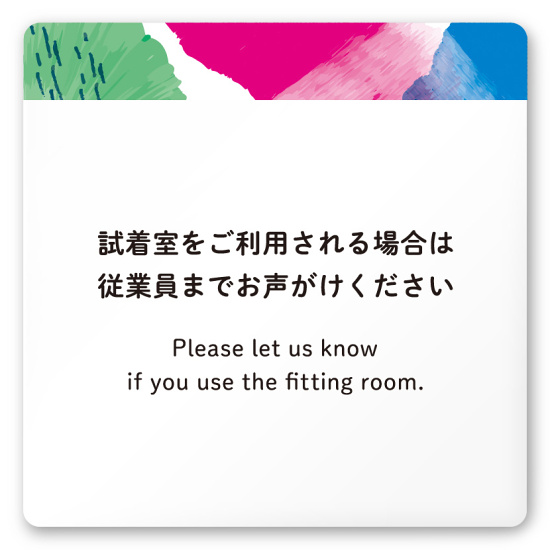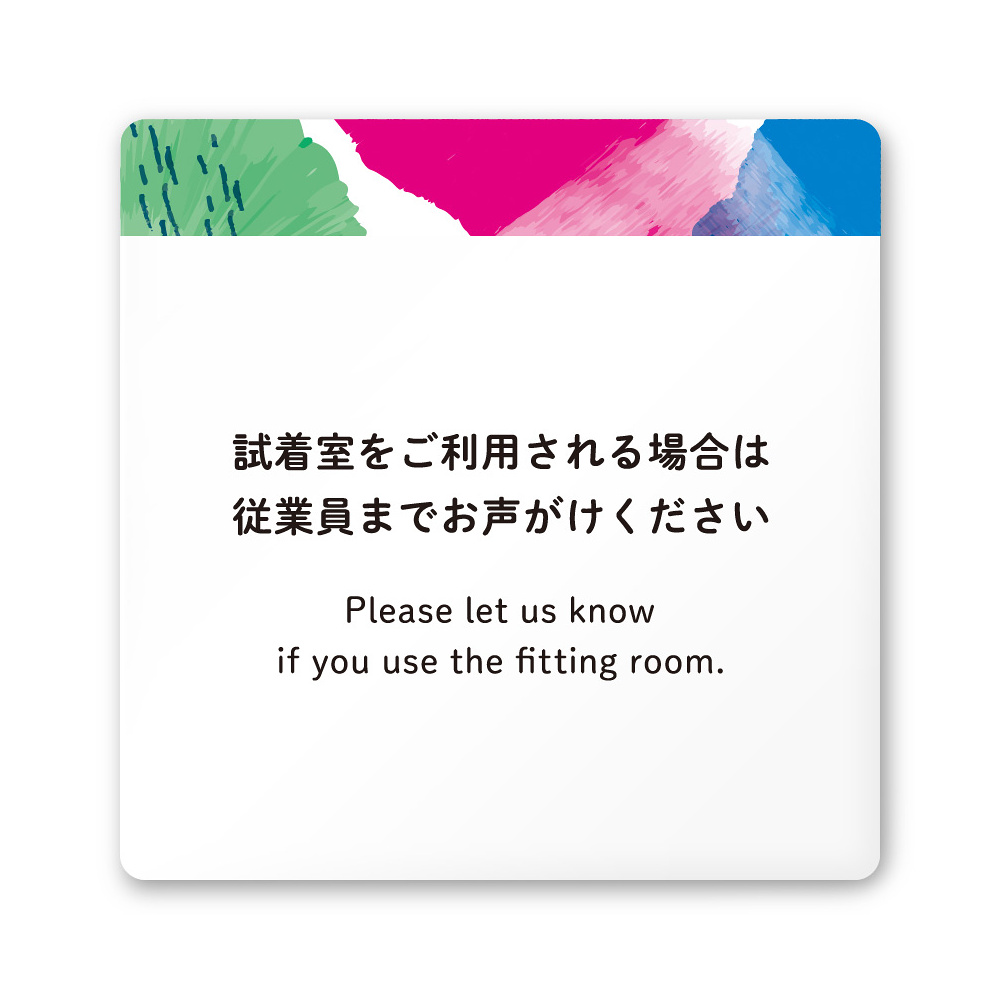 デザイナールームプレート アパレル向け 水彩 試着利用案内 白マットアクリル W150×H150 (AC-1515-AB-NT1-0120)