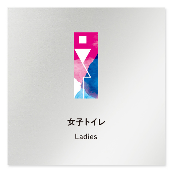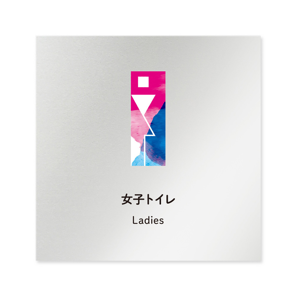 デザイナールームプレート アパレル向け 水彩 女子トイレ アルミ板 W150×H150 (AL-1515-AB-NT1-0104)