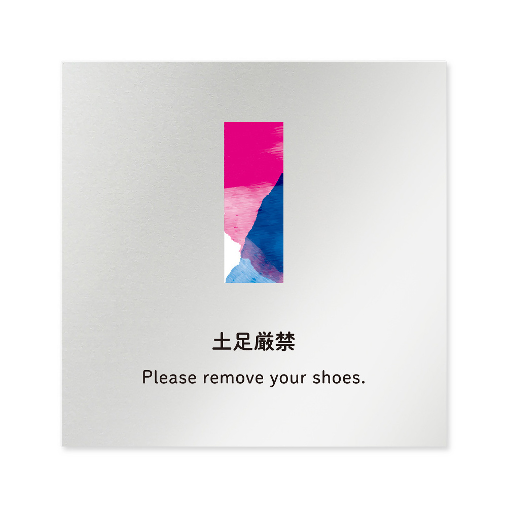 商品説明:デザイナールームプレート アパレル向け 水彩 土足厳禁 アルミ板 W150×H150 (AL-1515-AB-NT1-0118)