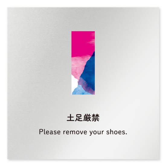 デザイナールームプレート アパレル向け 水彩 土足厳禁 アルミ板 W150×H150 (AL-1515-AB-NT1-0118)