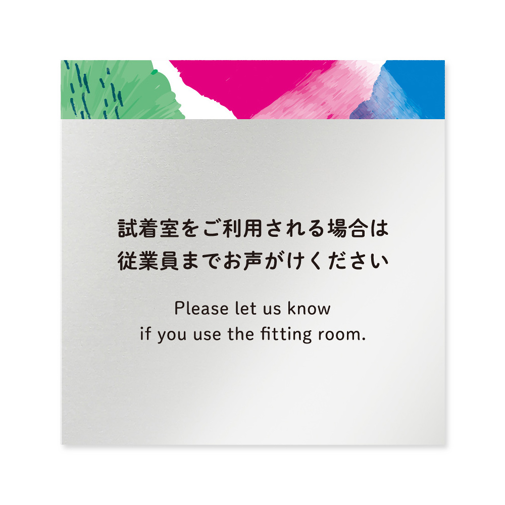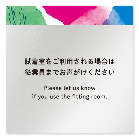 デザイナールームプレート アパレル向け 水彩 試着利用案内 アルミ板 W150×H151 (AL-1515-AA-NT1-0120)