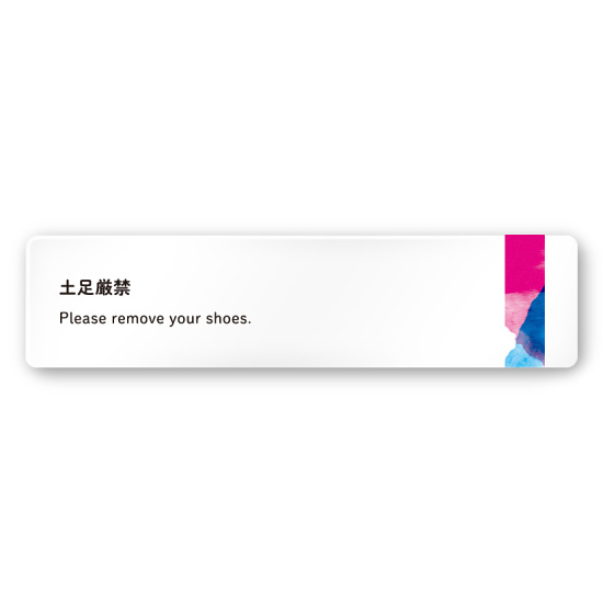 デザイナールームプレート アパレル向け 水彩 土足厳禁 白マットアクリル W250×H60 (AC-2560-AA-NT1-0218)