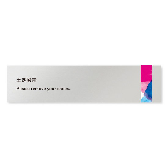 デザイナールームプレート アパレル向け 水彩 土足厳禁 アルミ板 W250×H60 (AL-2560-AB-NT1-0218)