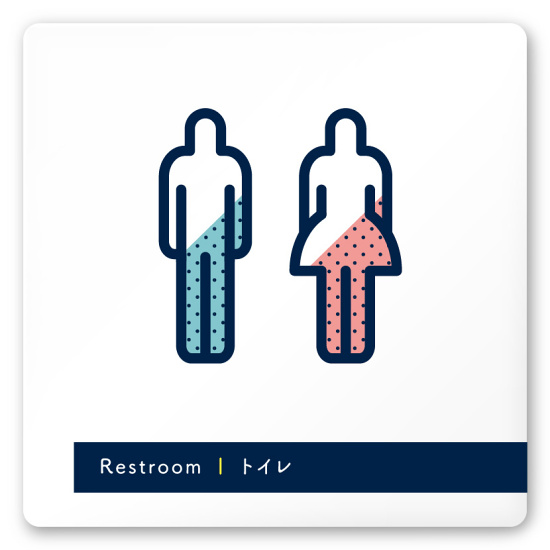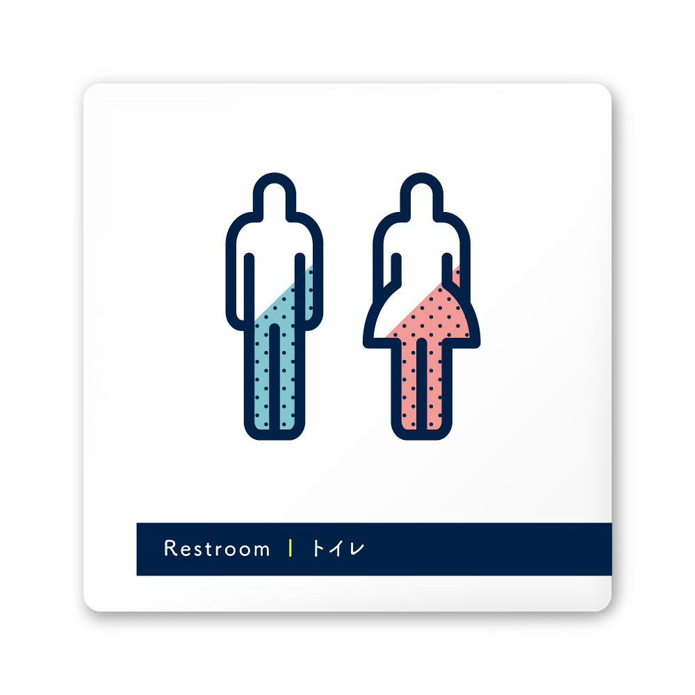デザイナールームプレート アパレル向け ドット トイレ2 白マットアクリル W150×H150 (AC-1515-AA-NT2-0102)