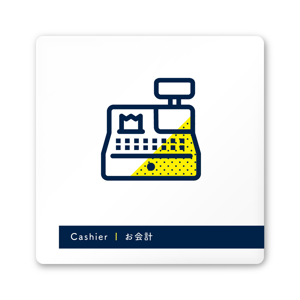 デザイナールームプレート アパレル向け ドット お会計 白マットアクリル W150×H150 (AC-1515-AA-NT2-0113)