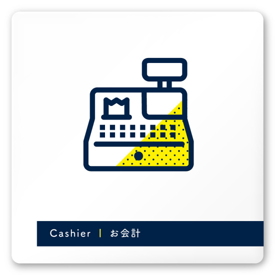 商品説明:デザイナールームプレート アパレル向け ドット お会計 白マットアクリル W150×H150 (AC-1515-AA-NT2-0113)