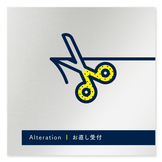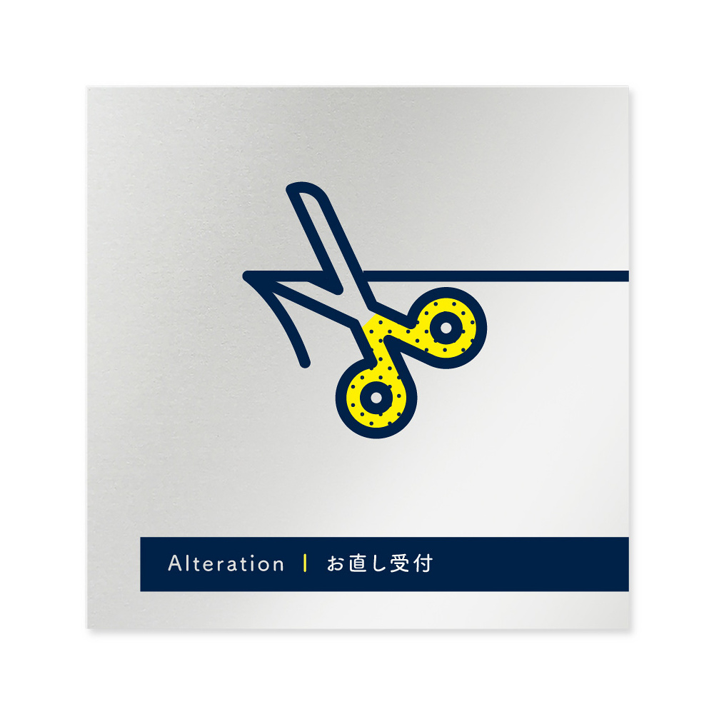 商品説明:デザイナールームプレート アパレル向け ドット お直し受付 アルミ板 W150×H150 (AL-1515-AB-NT2-0114)