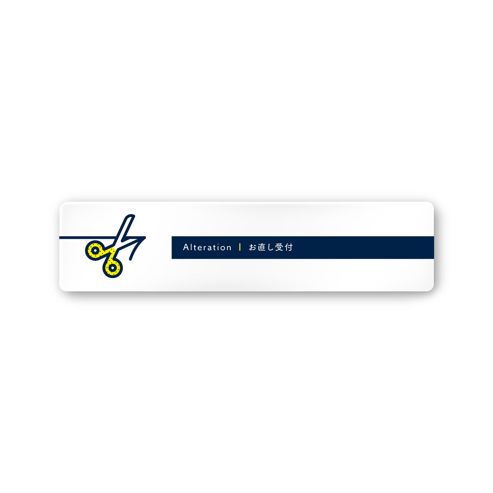 デザイナールームプレート アパレル向け ドット お直し受付 白マットアクリル W250×H60 (AC-2560-AA-NT2-0214)