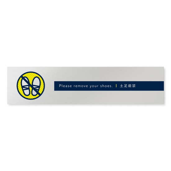 デザイナールームプレート アパレル向け ドット 土足厳禁 アルミ板 W250×H60 (AL-2560-AB-NT2-0218)