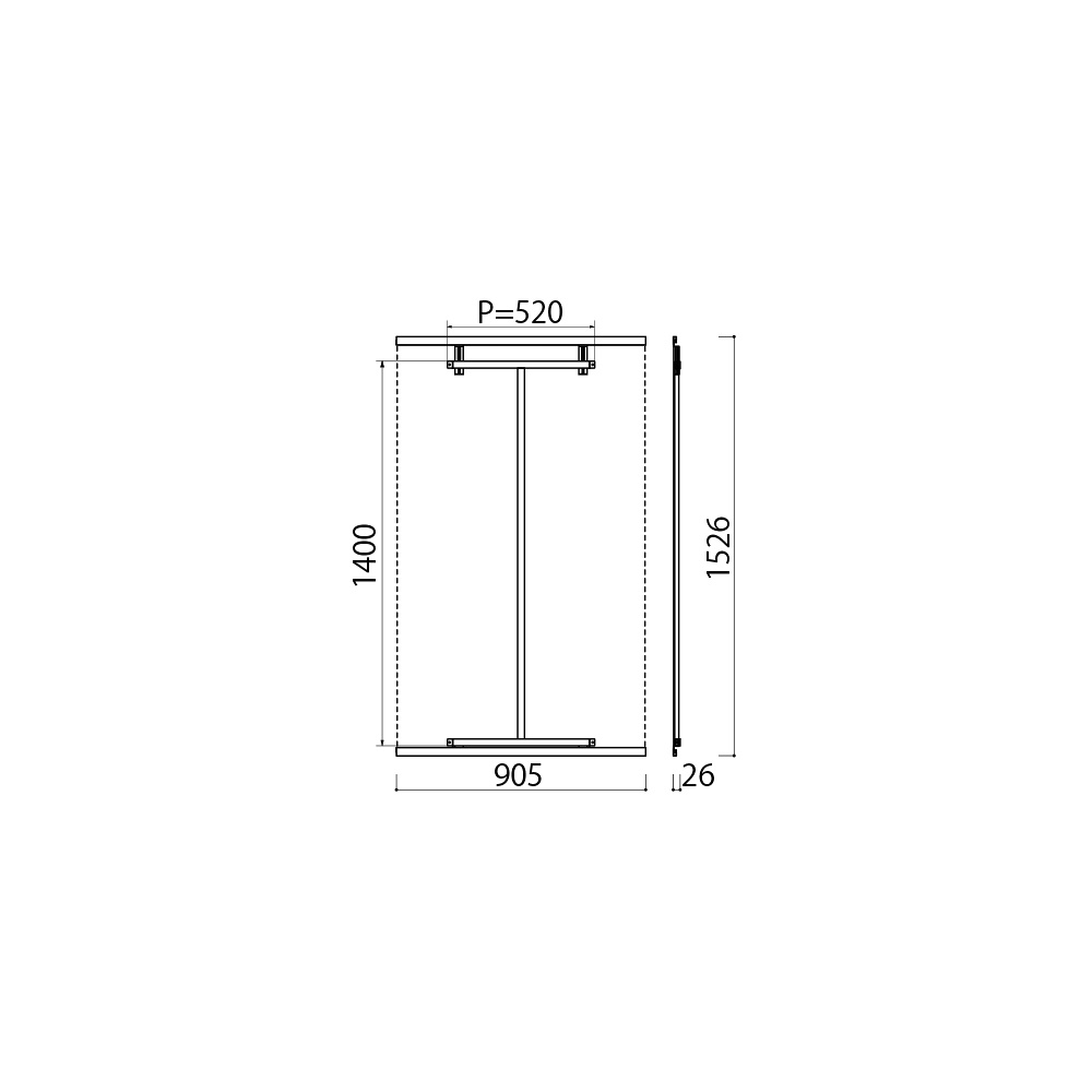 - W905×D26×H1526mm