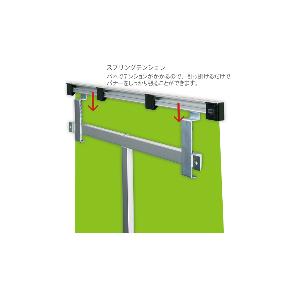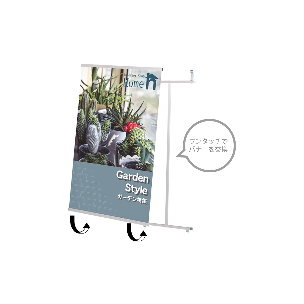 引っ掛けるだけで簡単設置。バナーもワンタッチで交換可能。