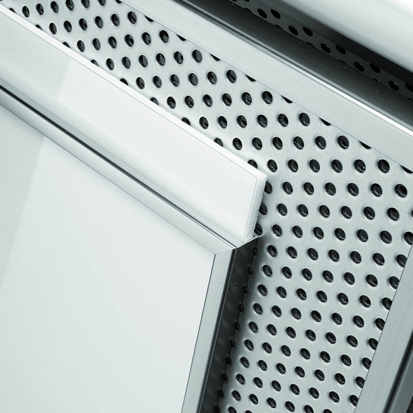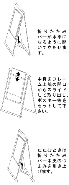 スライドセット式の両面ポスタースタンド。ポスター交換がラクラク。
