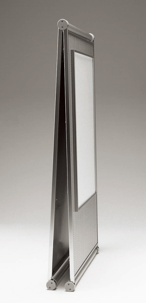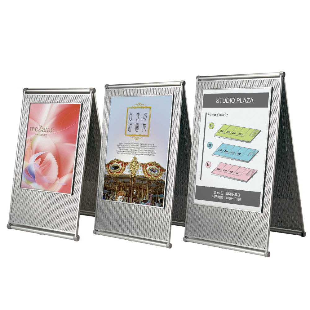 安定感のあるA型両面ポスタースタンド。商業・公共空間をモダンに演出します。 -