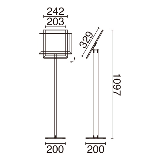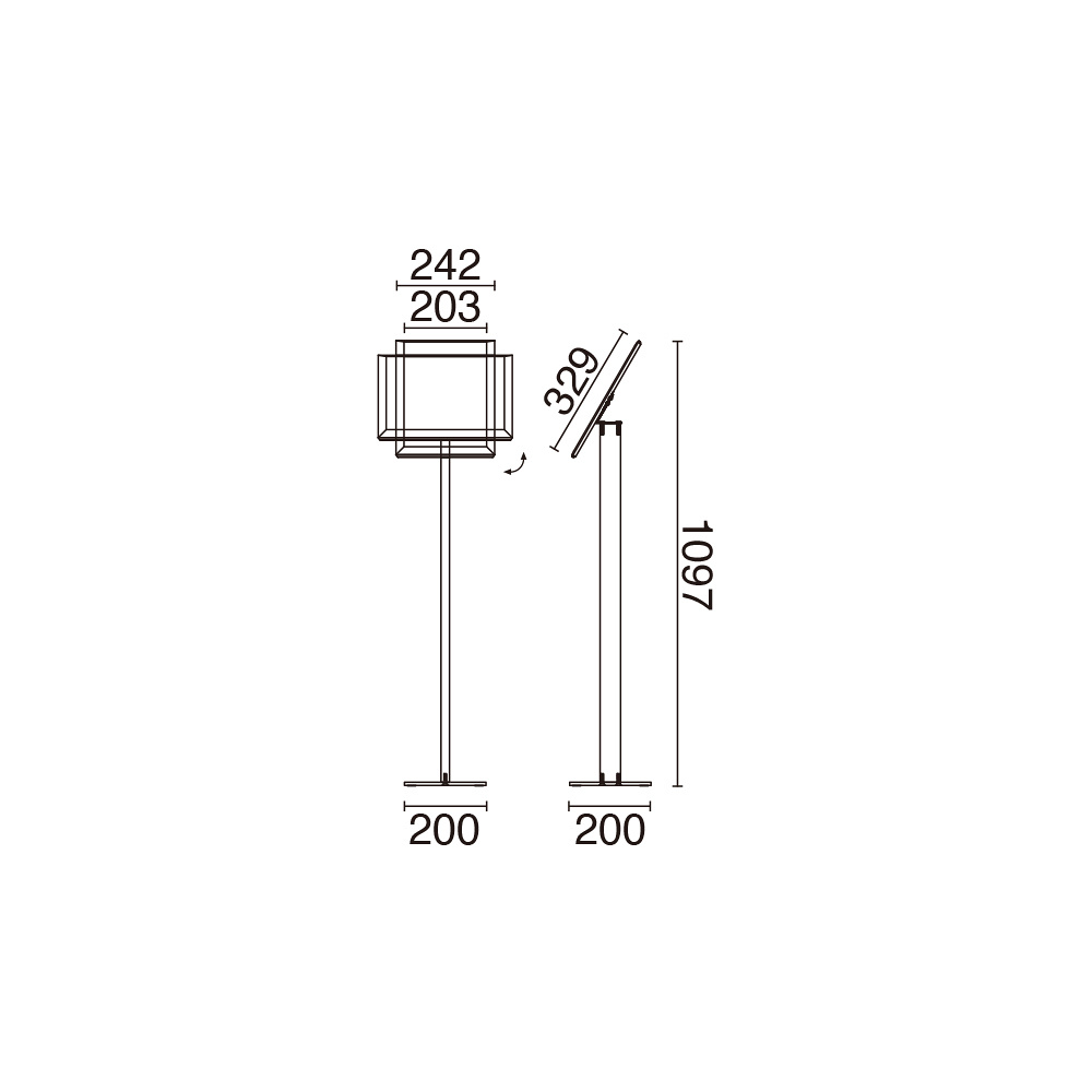 縦使用時:W242×D200×H1097mm - 面板サイズ