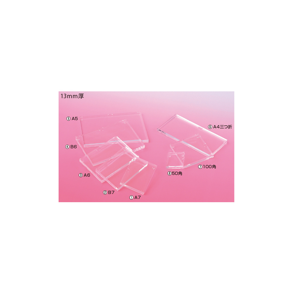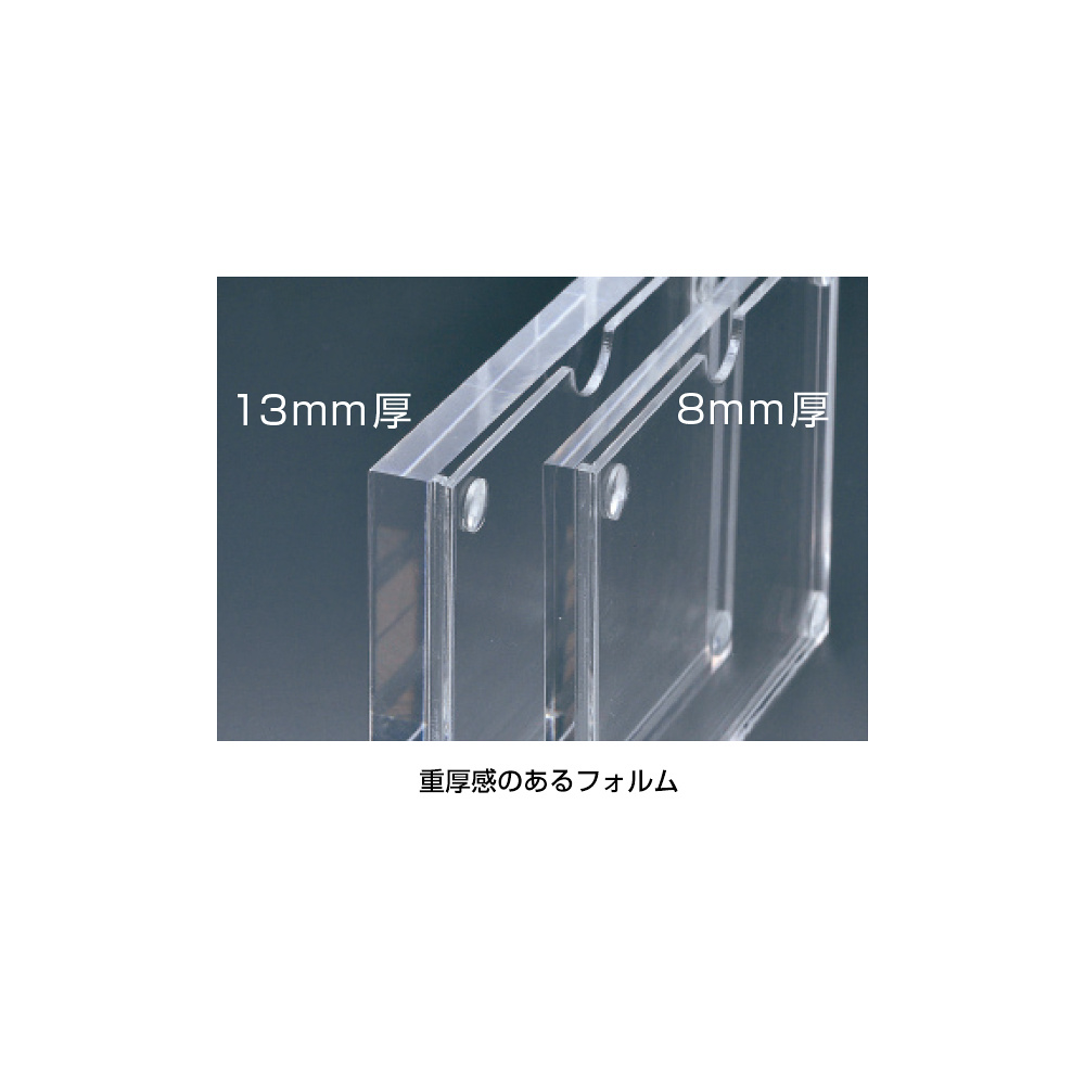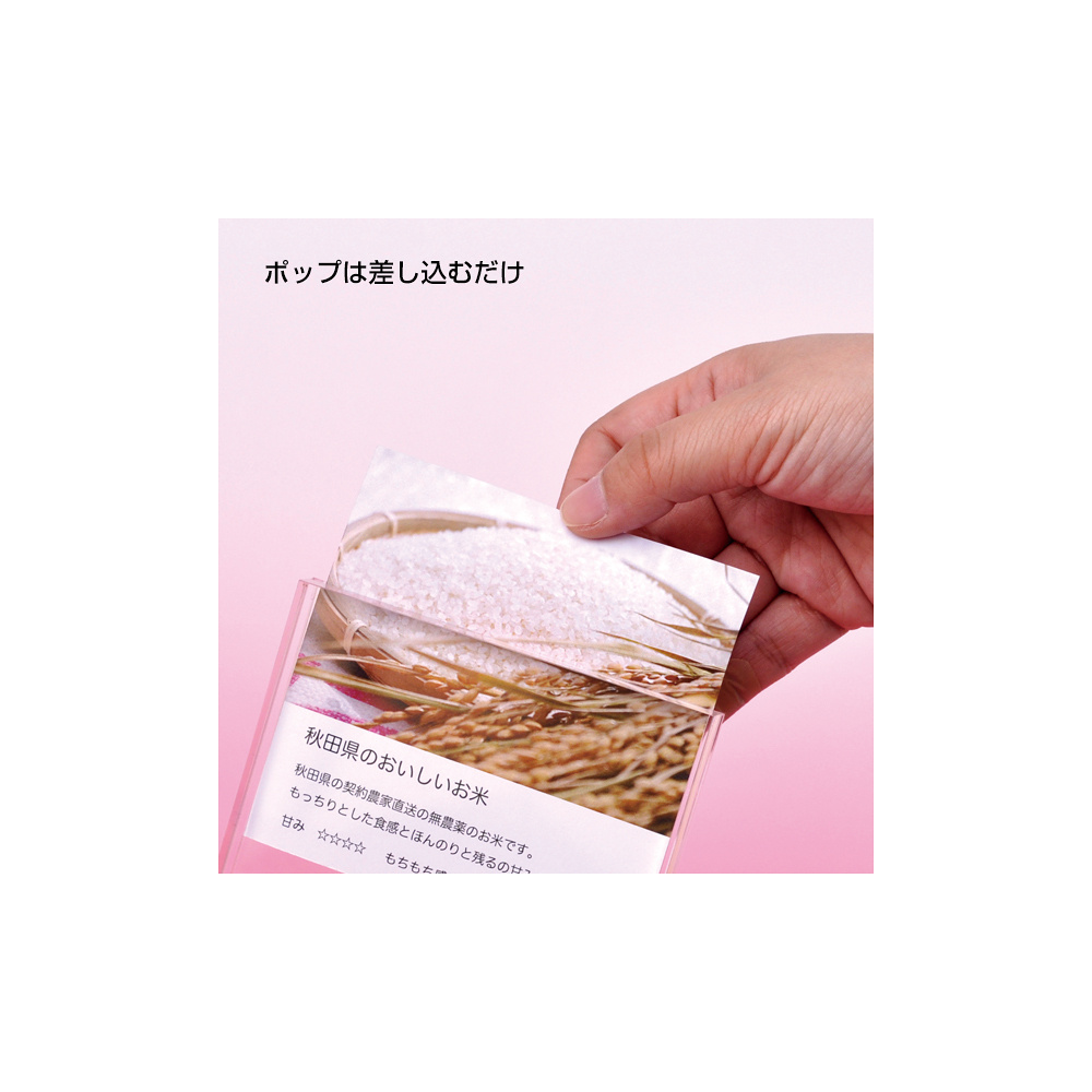重厚なアクリルを使用したカードケース。ポップは仕込み口から差し込むだけでOK。プライス表示や展示キャプションなどにおすすめです。