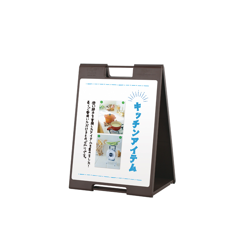 「スタンドプレート マーカー用 SP-729ブラウン」の導入をご検討中ですか? 大量注文・複数台のご検討に応じたお見積りのご相談、最短納期や送料、仕様・サイズの確認など、 マーカーボード式A型木製看板選びをまとめてサポートいたします。
