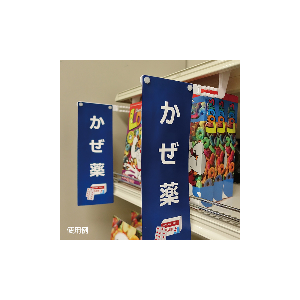 - 金属製什器の棚下に、マグネットで簡単設置できるカテゴライズパーツ。