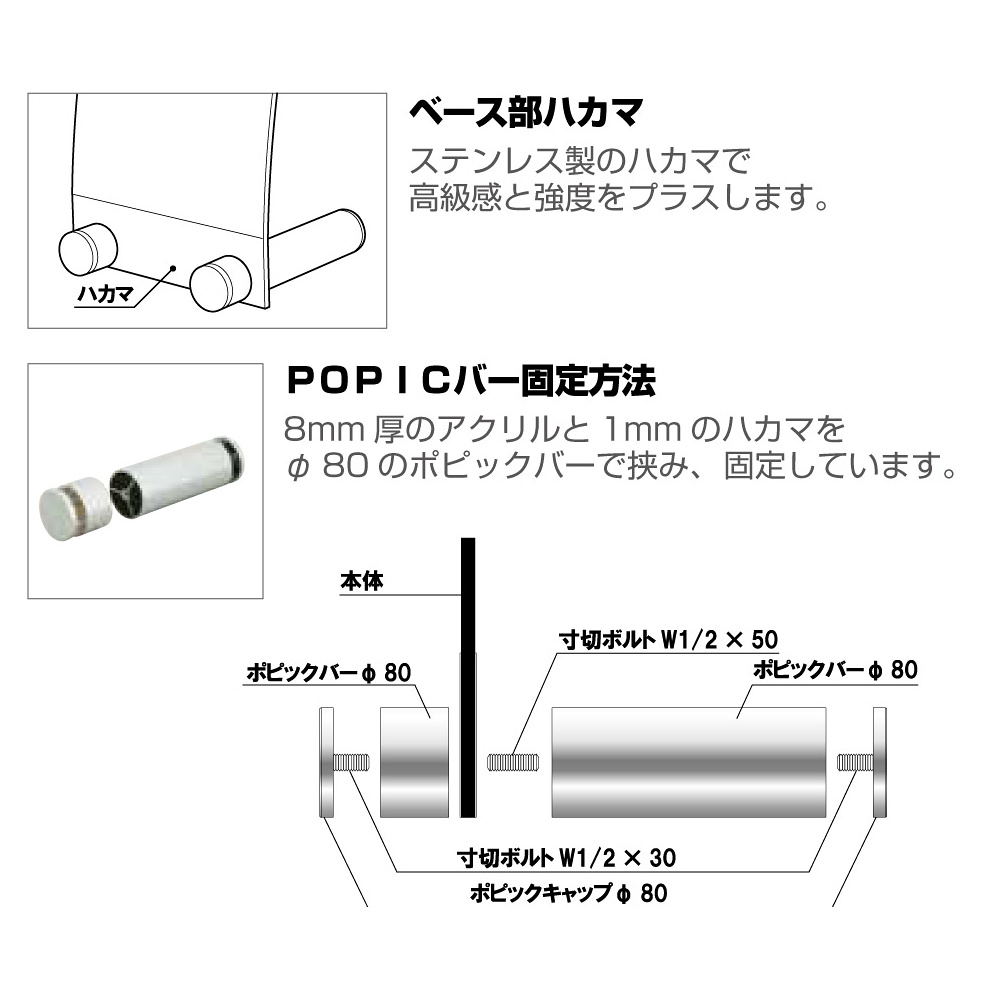 - ポピックバーφ80-50×2ヶ ポピックバーφ80-300×2ヶ ポピックキャップφ80×4ヶ