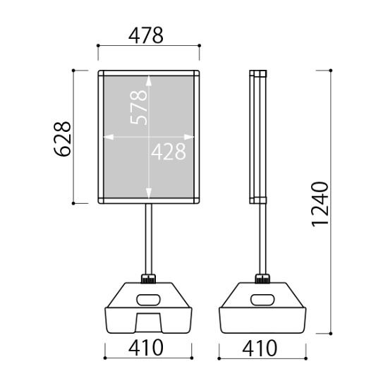 - 注水型のベースを使用し、転倒しにくいスタンドです。