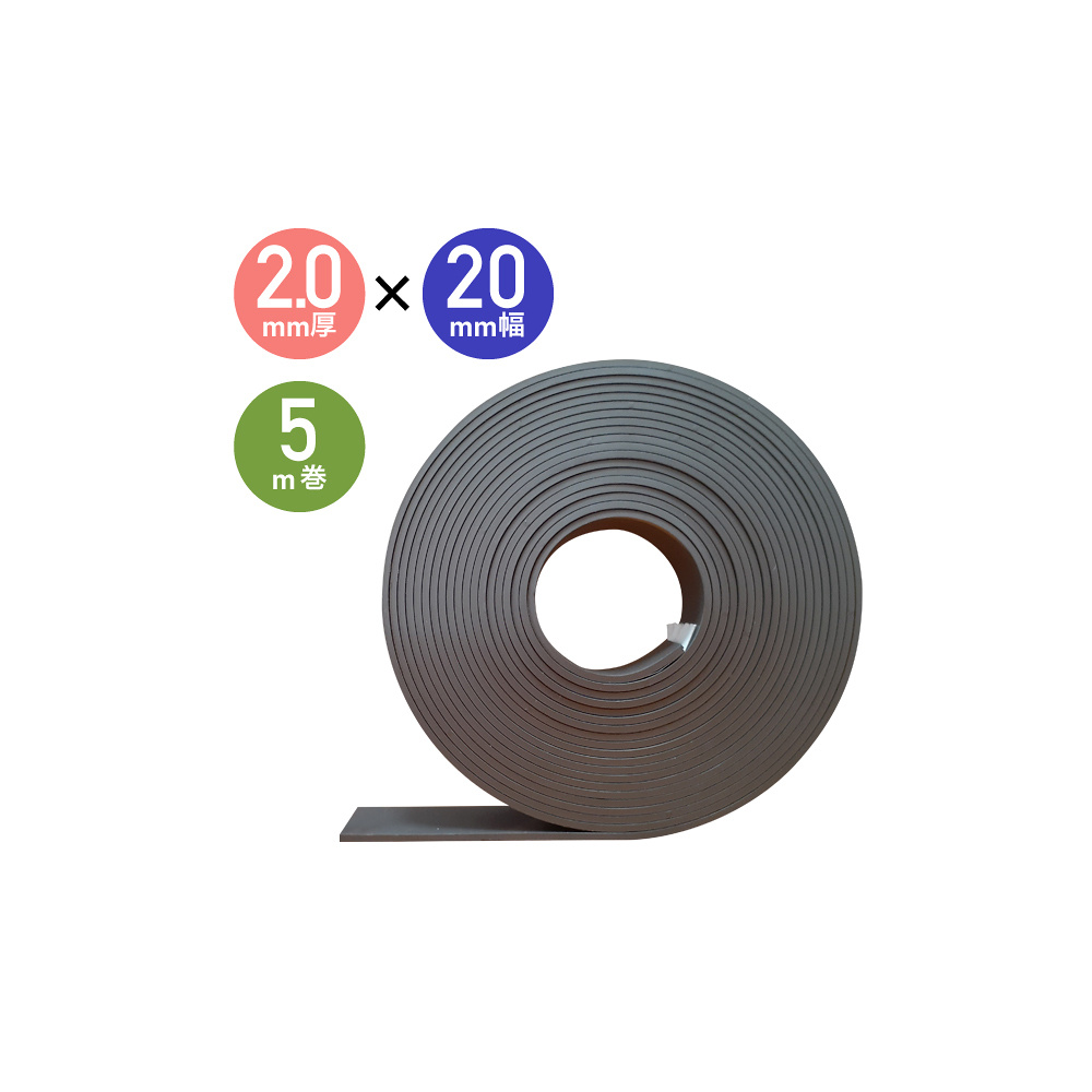 商品説明:強力マグネットテープ 異方性タイプ 粘着テープ付 20mm×5M t2