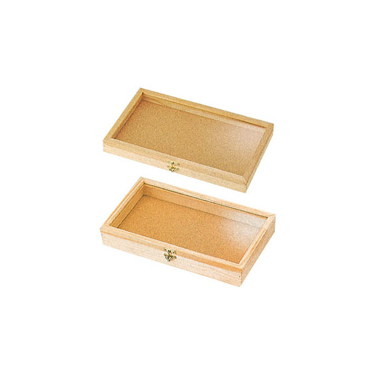 上部に透明ガラスを使用しており、中の商品が見やすい木製ケース。