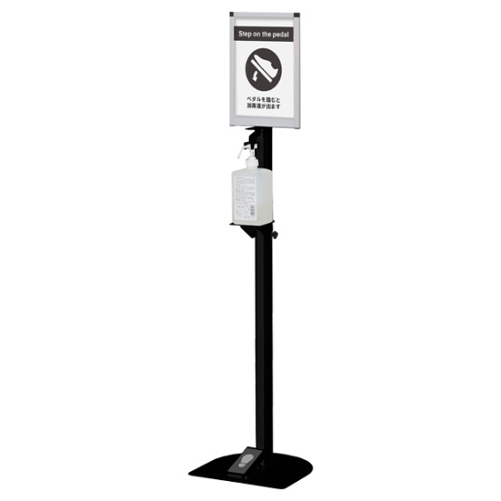 商品説明:ノータッチ消毒液スタンドA4縦黒 DSI-A4TB