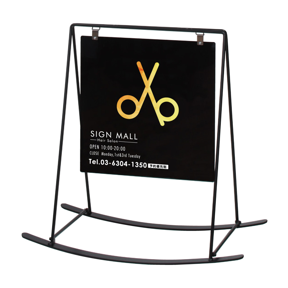 - ロッキングチェアーのようなオシャレなデザイン看板。