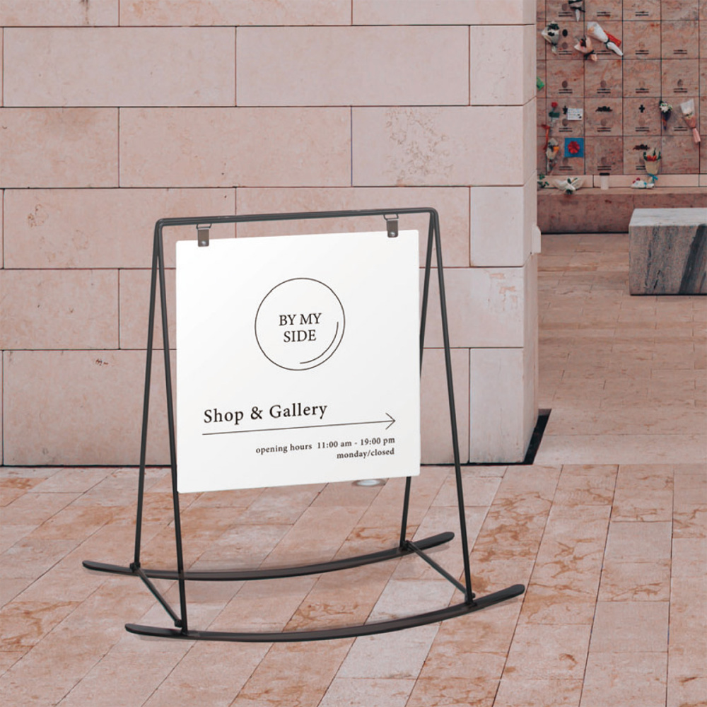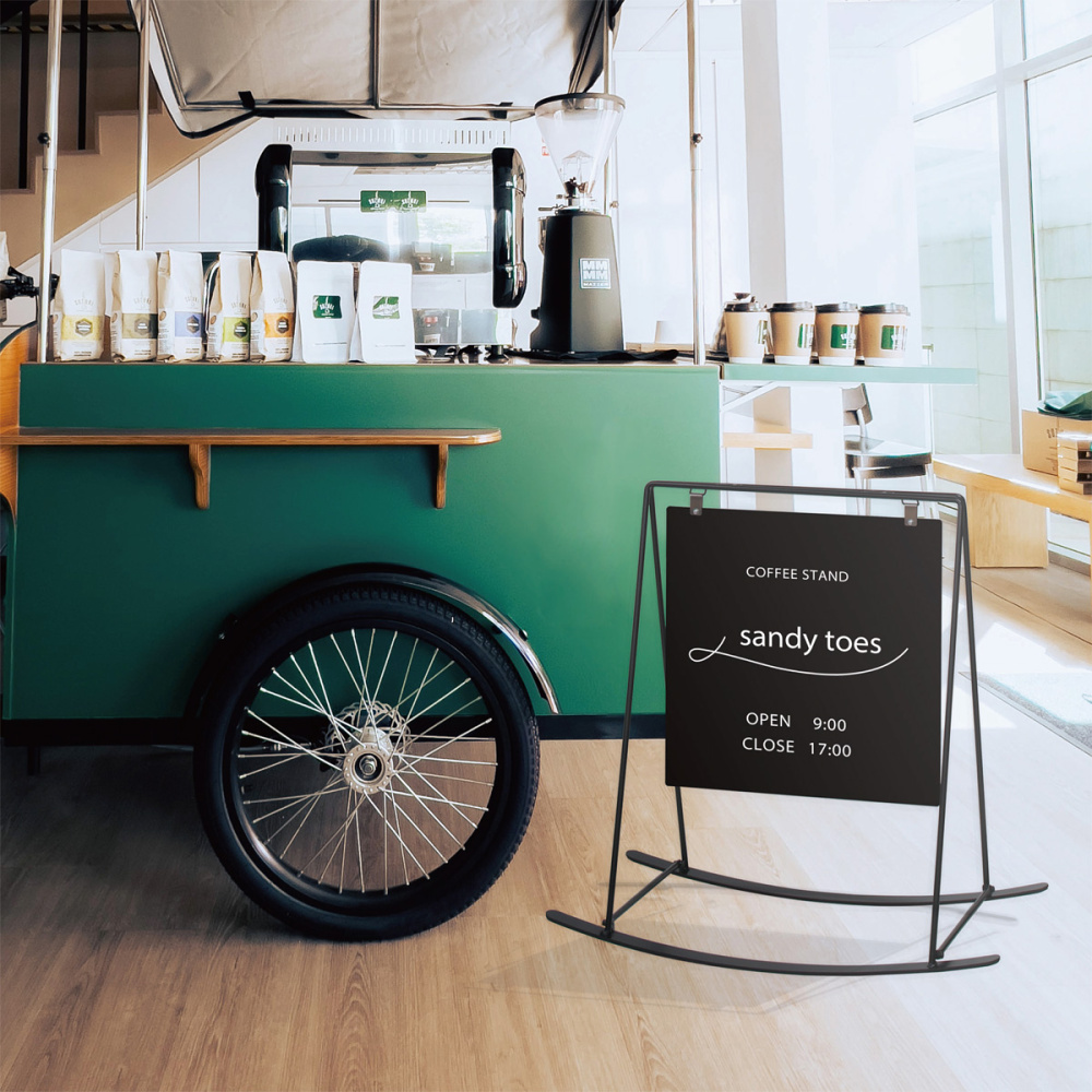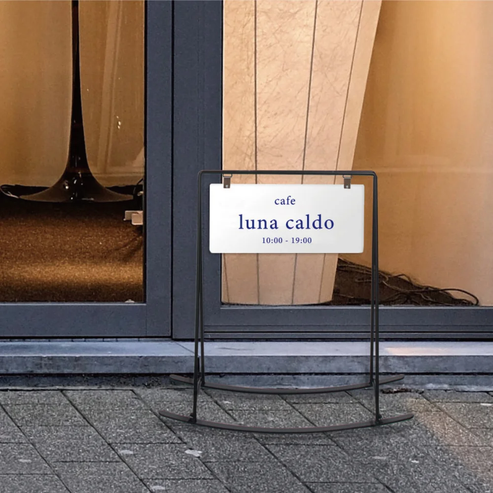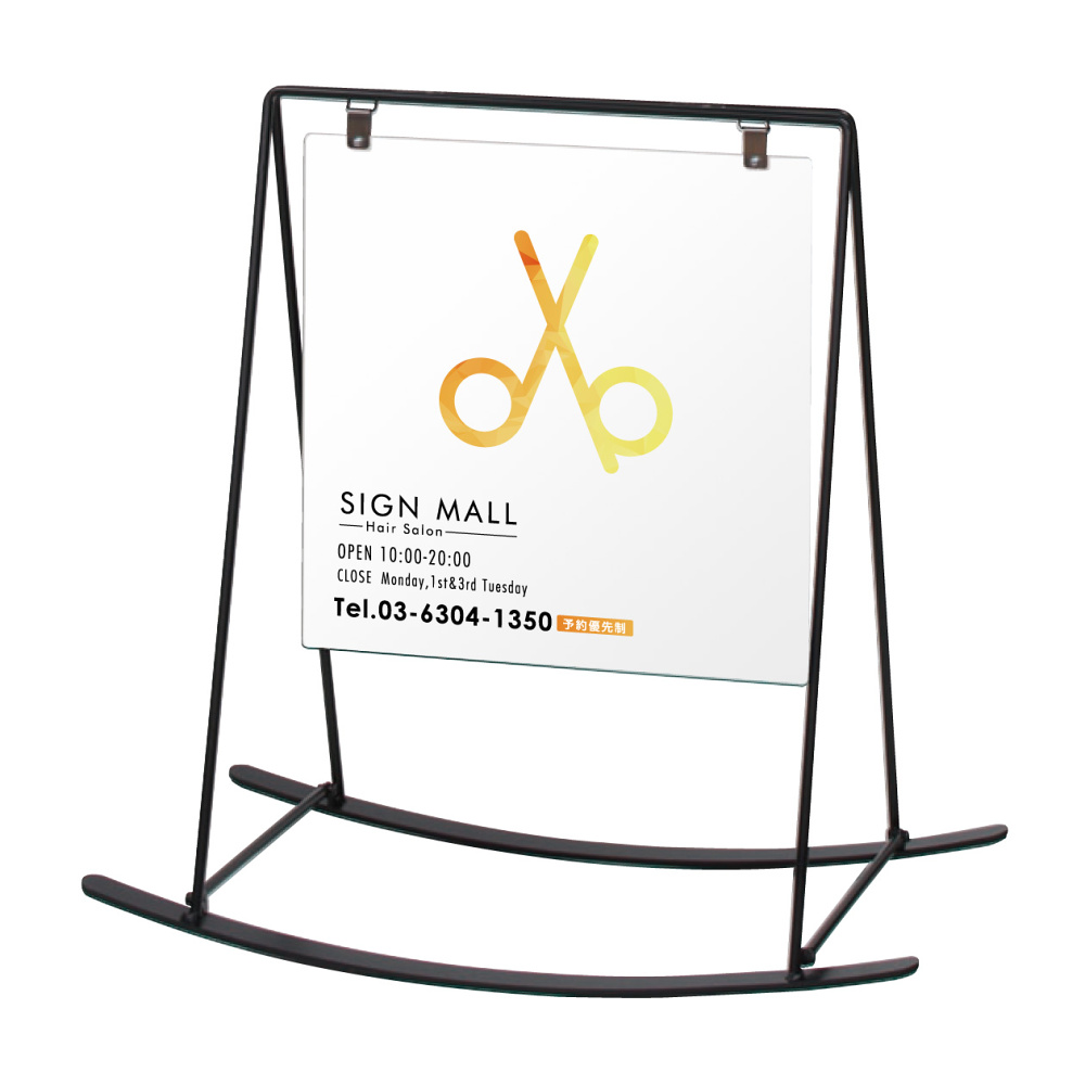 - ロッキングチェアーのようなオシャレなデザイン看板。