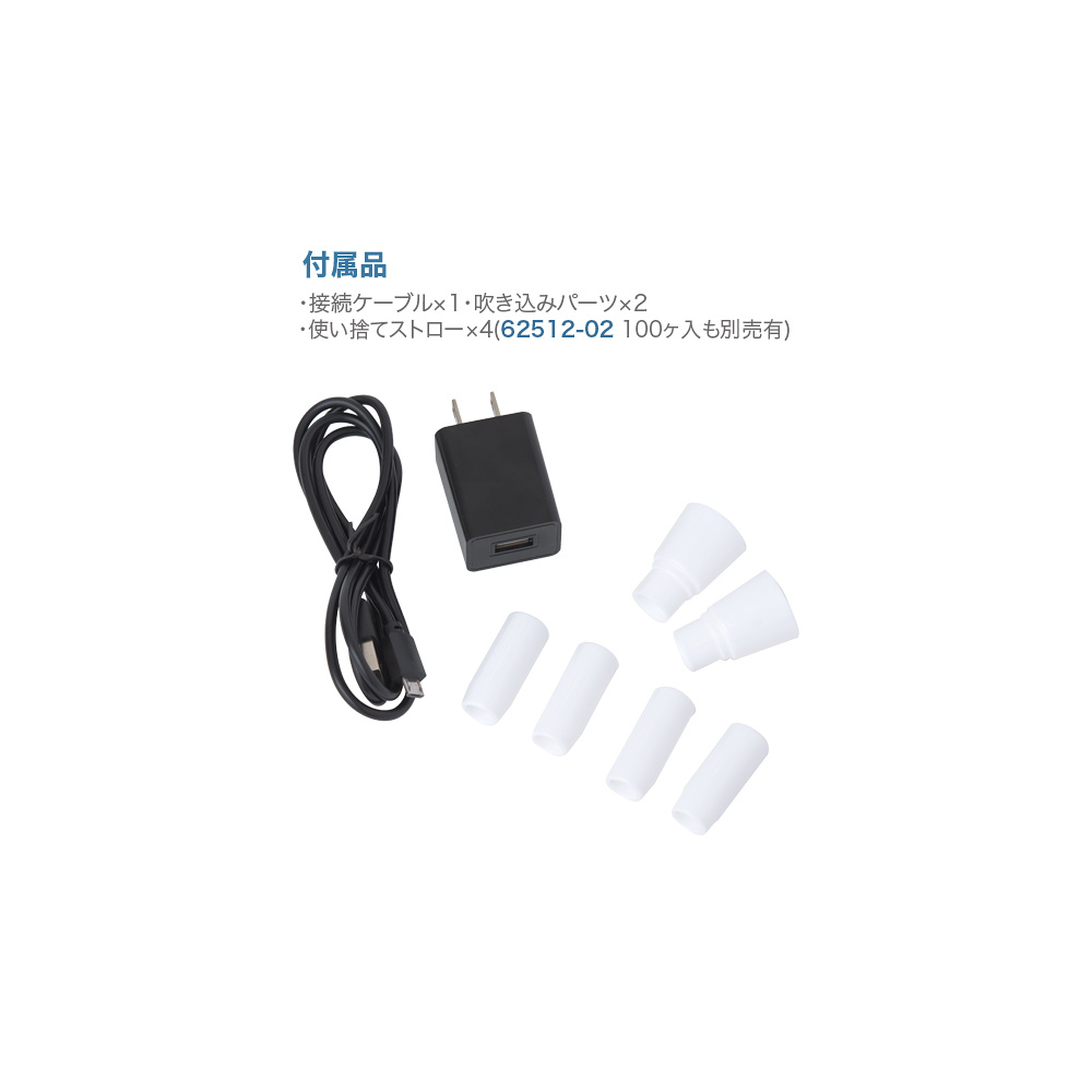 - 接続ケーブル×1、吹き込みパーツ×2、使い捨てストロー×4