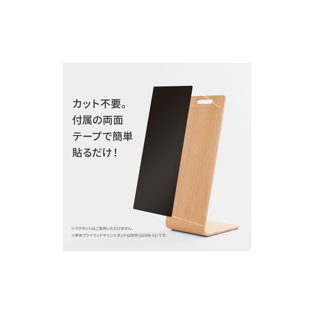 プライウッドサインスタンドが、ボード用水性マーカーやチョークで書き消しができるブラックボードに。<br>付属の両面テープで貼り付けるだけでご利用いただけます。