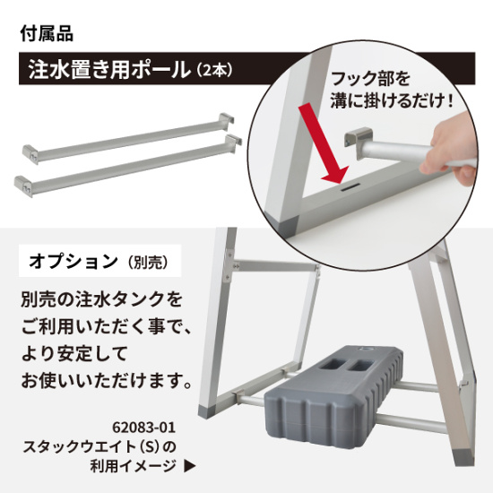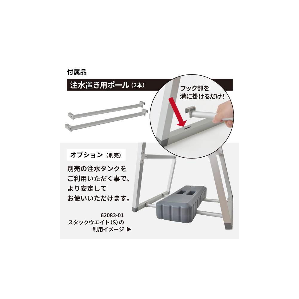 - 注水置き用ポール(2本)、スチール板(t0.5mm):20×300mm ×4本、20×400mm×6本、20×600mm×4本