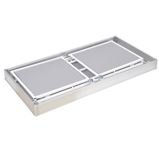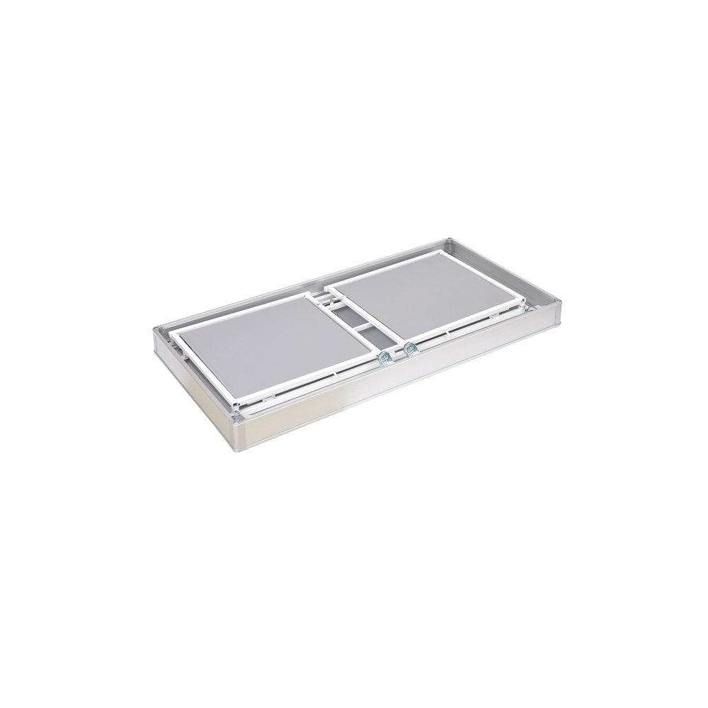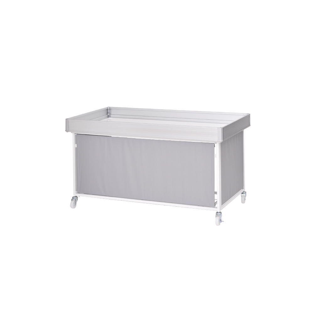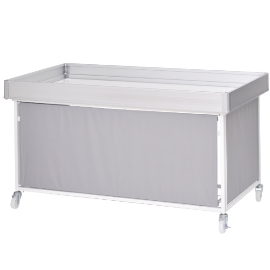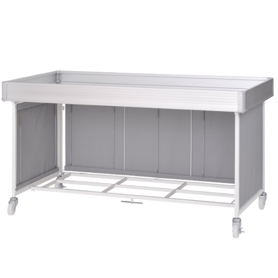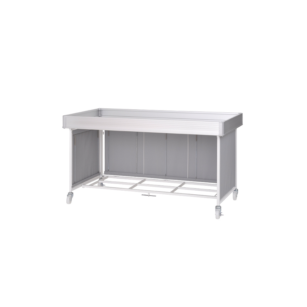 - 本体フレーム:スチール塗装仕上げ、上箱:アルミニウム、天板:木製、幕部分:ポリエステル、キャスター:ナイロン