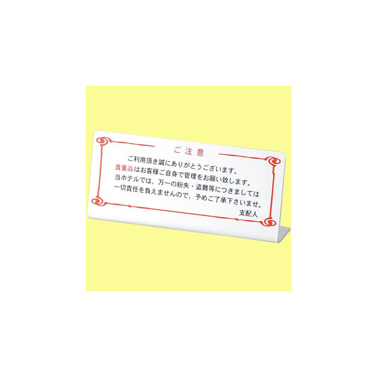 「L型注意サイン HG-26 盗難注意」の導入をご検討中ですか? 大量注文・複数台のご検討に応じたお見積りのご相談、最短納期や送料、仕様・サイズの確認など、 受付・会計・フロントプレートサイン選びをまとめてサポートいたします。