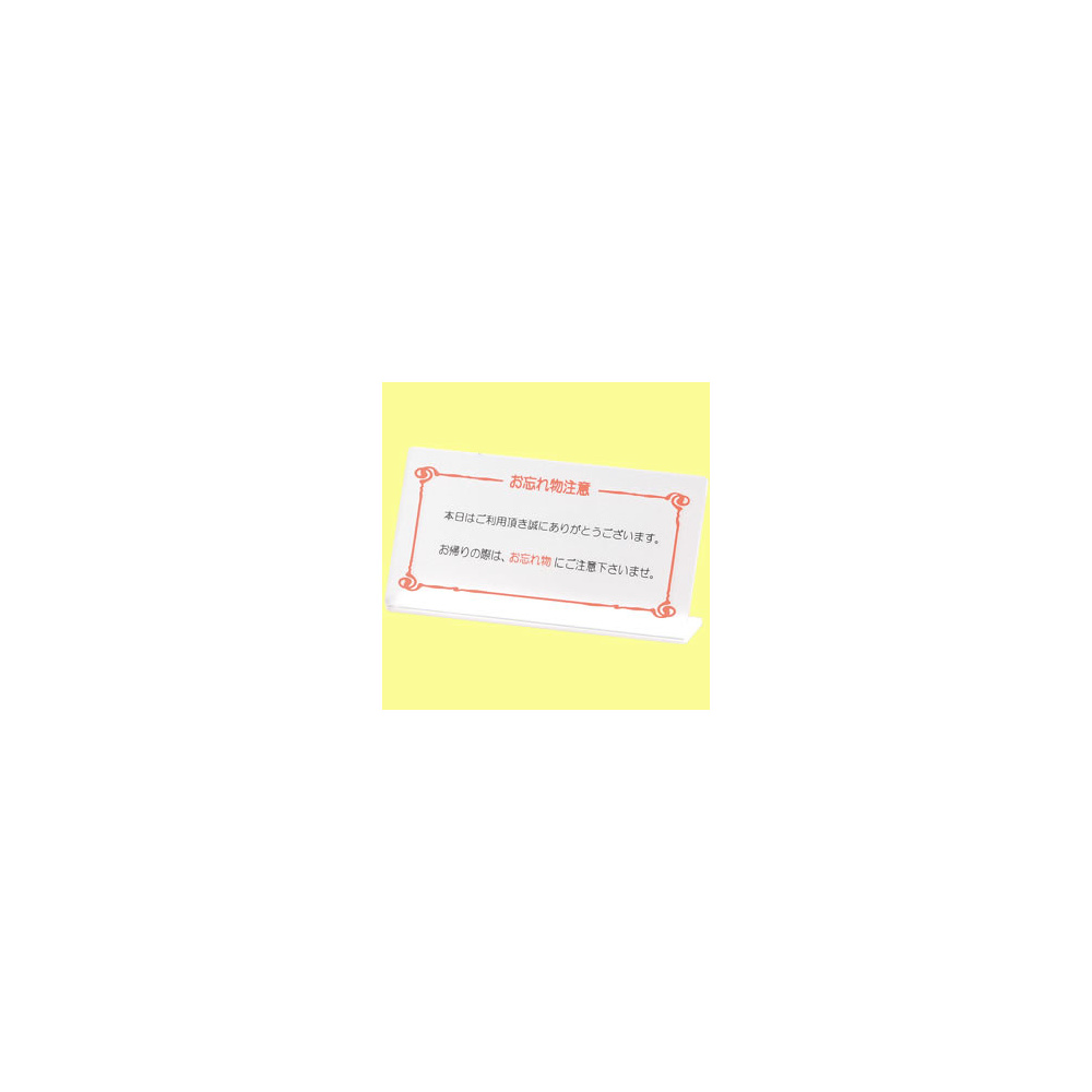 「L型注意サイン HG-25 忘れ物注意」の導入をご検討中ですか? 大量注文・複数台のご検討に応じたお見積りのご相談、最短納期や送料、仕様・サイズの確認など、 受付・会計・フロントプレートサイン選びをまとめてサポートいたします。