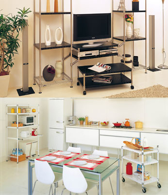 - ワイヤーシェルフと同等の、1枚あたり135kgの耐荷重を誇ります。