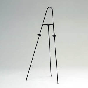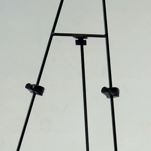 スチール製のシンプルなイーゼルスタンド。軽量パネルに。可動式パネル受け付き。