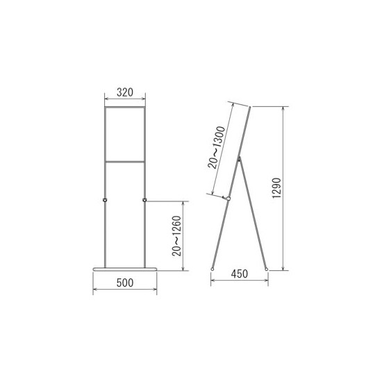 可動式パネル受け付きの安定感のあるPOPスタンド。